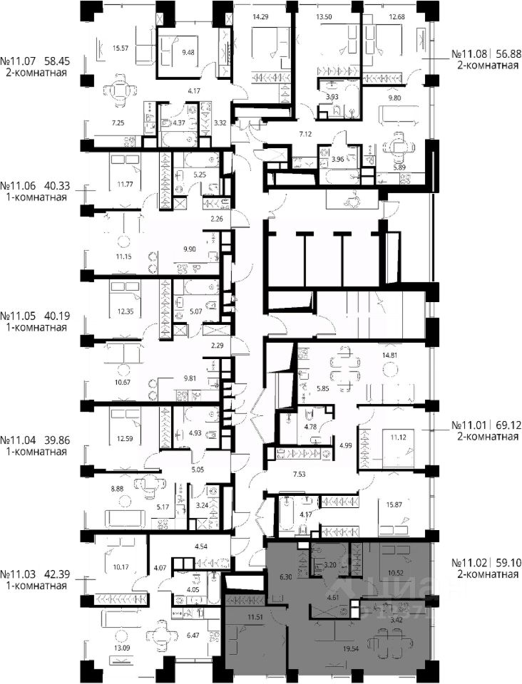 Продаётся 2-комнатная квартира общей площадью 59.10 м² с предчистовой отделкой в ЖК City Вау, квартале North, на 11-м этаже 27 этажного дома.