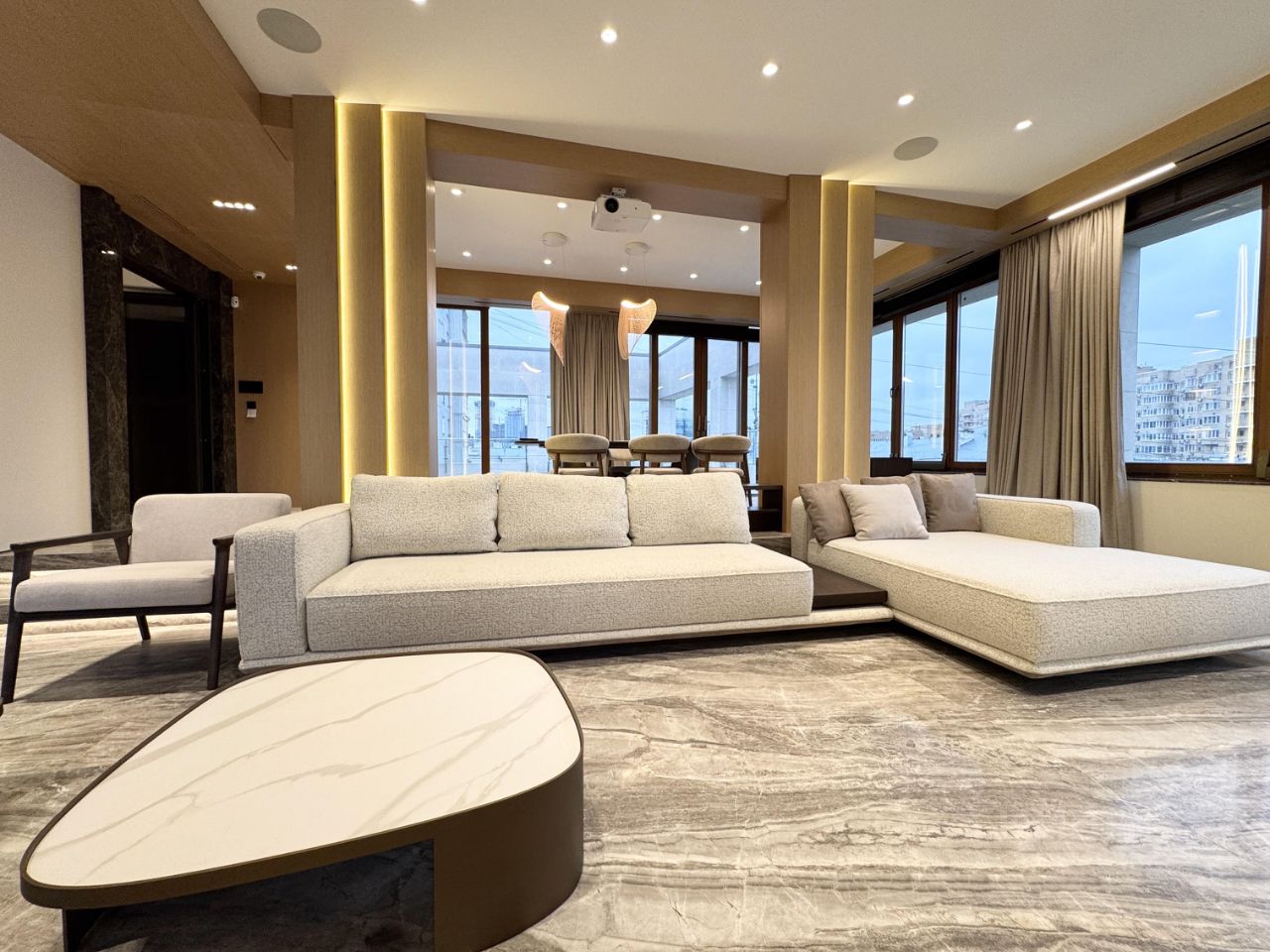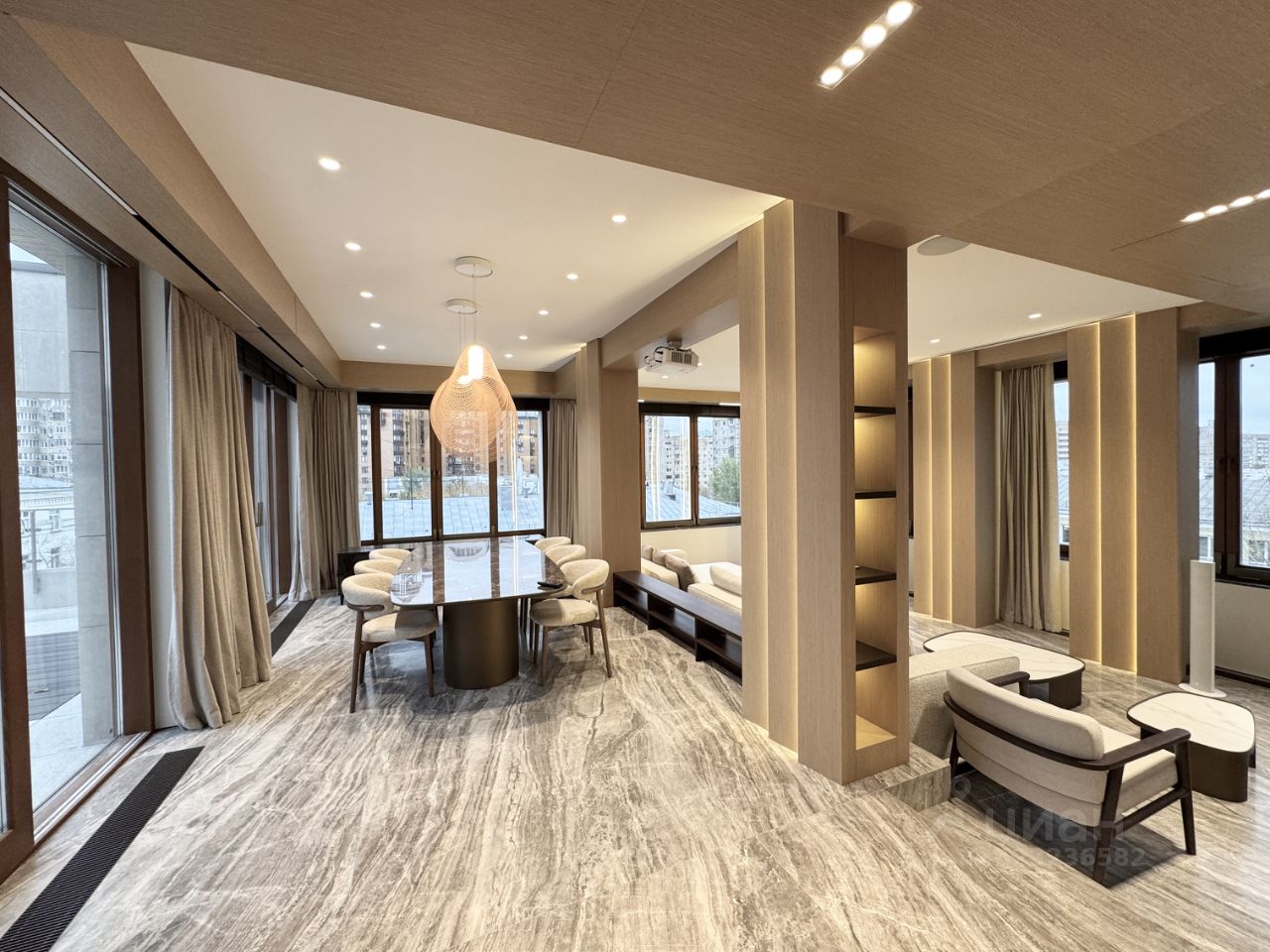 В квартире выполнен дизайнерский ремонт с использованием качественных, премиальных материалов (натуральный шпон, мрамор, оникс, итд).