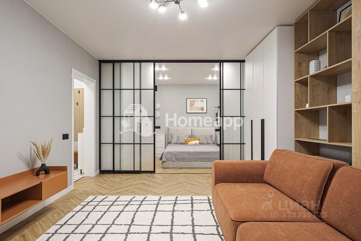 Квартира продумана до мелочей: две жилые зоны разделены алюминиевой раздвижной перегородкой, что позволяет создать отдельную спальню и гостиную, сохранив ощущение пространства и света.
