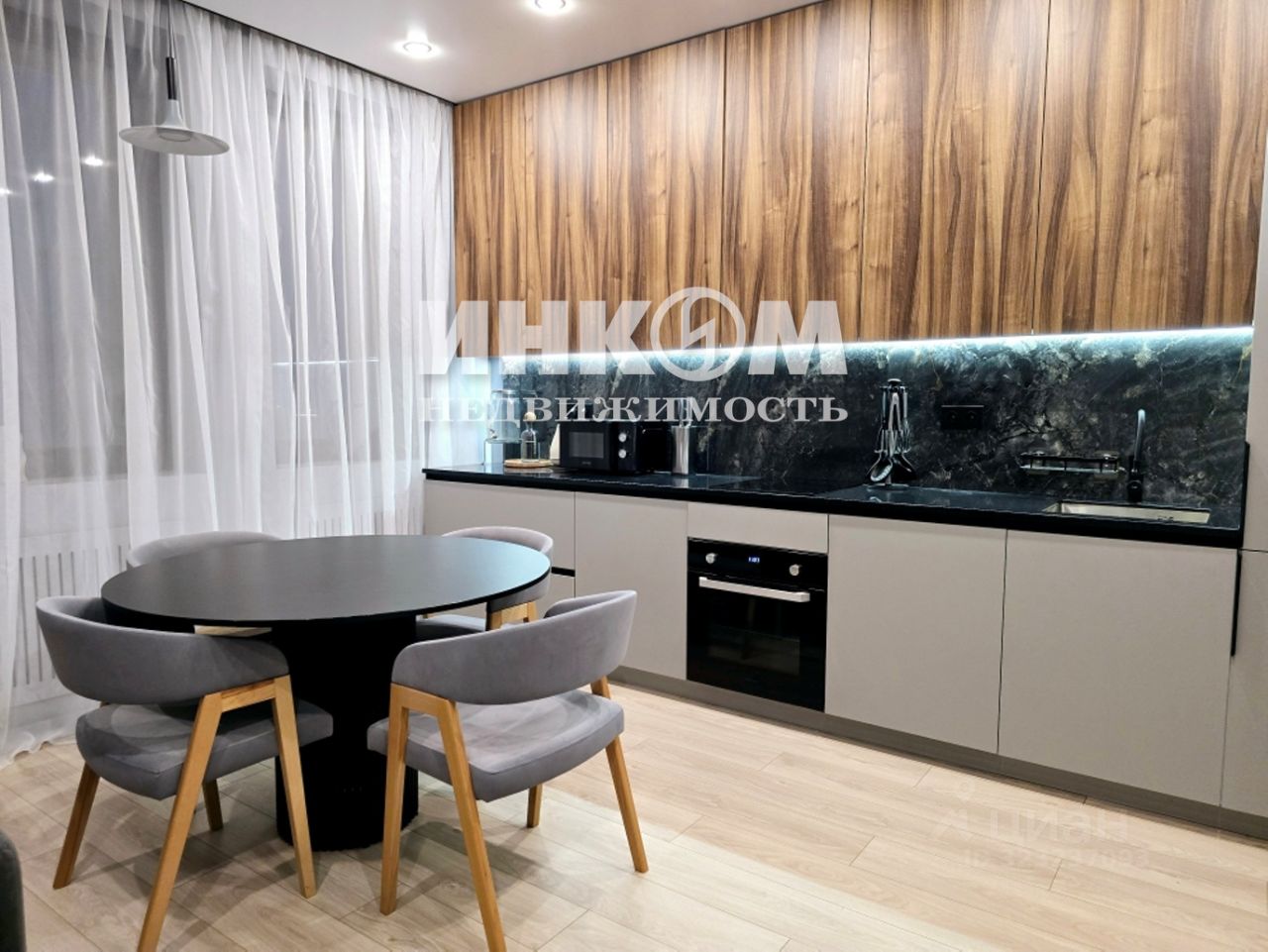 Апартаменты полностью укомплектованы всей необходимой мебелью и бытовой техникой. Просторная кухня-гостиная, с обеденной зоной станет сердцем вашего дома, где можно наслаждаться общением с близкими. Изолированная спальня с большой гардеробной с окном.