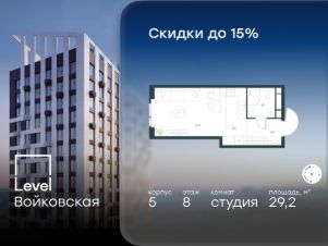 Продается студия площадью 29.20 кв. м без отделки. Квартира находится на 8 этаже 20-этажного корпуса 5, в новом жилом комплексе бизнес-класса Level Войковская, расположенном рядом с живописным заповедником "Покровское-Стрешнево" (застройщик - компания Level Group/Левел групп).