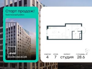 Продается студия площадью 28.60 кв. м с отделкой. Квартира находится на 7 этаже 26-этажного корпуса 4, в новом жилом комплексе бизнес-класса Level Войковская, расположенном рядом с живописным заповедником "Покровское-Стрешнево" (застройщик - компания Level Group/Левел групп).