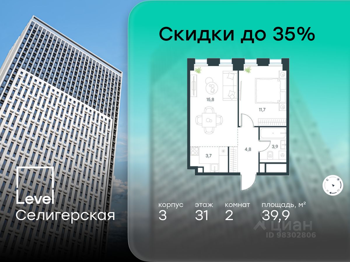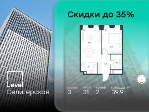 В жилом квартале, расположенном в южной части района Западное Дегунино, продаётся 2-комнатная квартира площадью 39.90 кв.м без отделки. Квартира расположена на 31 этаже 40-этажного корпуса 3 в жилом комплексе комфорт-класса Level Селигерская (компания Level Group/Левел групп).