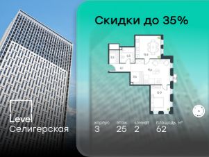 В жилом квартале, расположенном в южной части района Западное Дегунино, продаётся 2-комнатная квартира площадью 62.00 кв.м без отделки. Квартира расположена на 25 этаже 40-этажного корпуса 3 в жилом комплексе комфорт-класса Level Селигерская (компания Level Group/Левел групп).