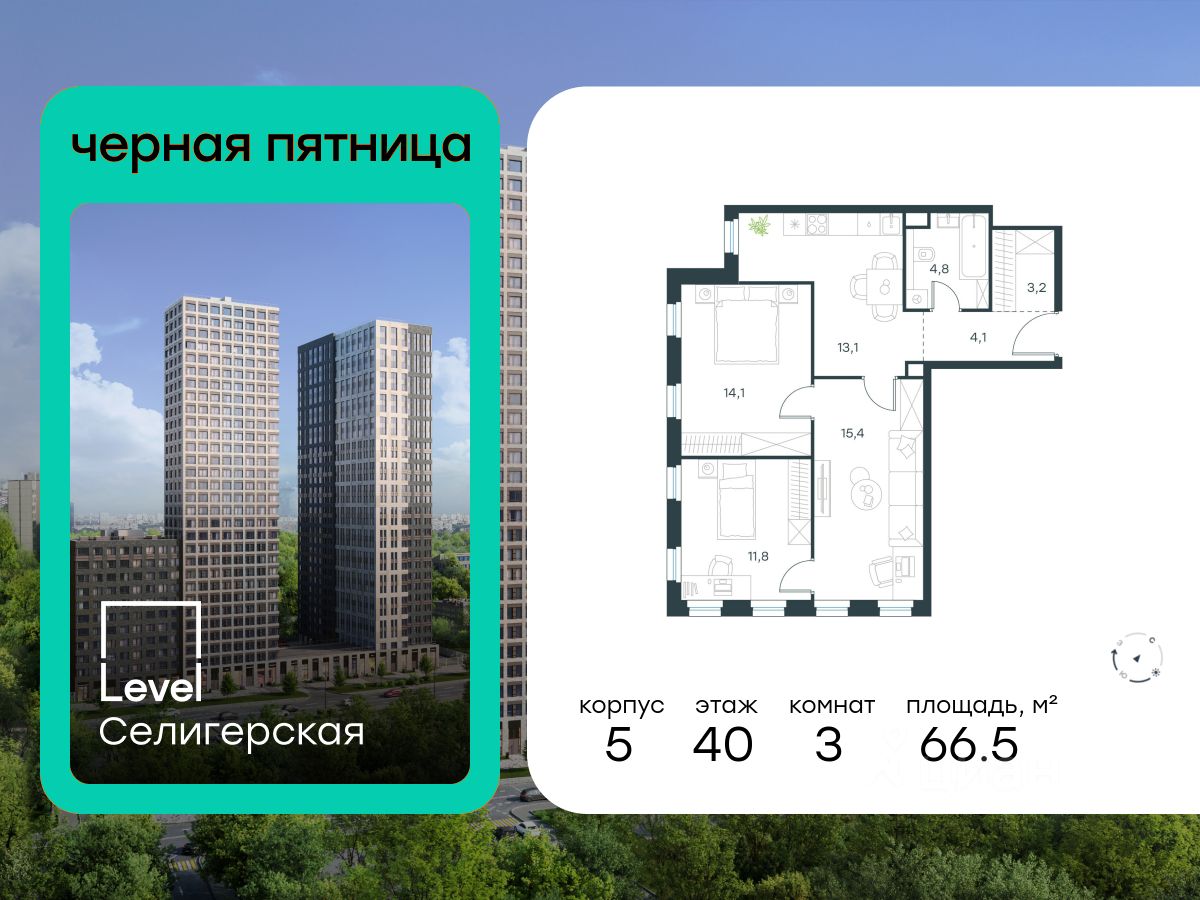 В жилом квартале, расположенном в южной части района Западное Дегунино, продаётся 3-комнатная квартира площадью 66.50 кв.м без отделки. Квартира расположена на 40 этаже 40-этажного корпуса 5 в жилом комплексе комфорт-класса Level Селигерская (компания Level Group/Левел групп).