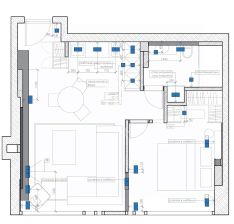 В отделке использованы дорогостоящие отделочные материалы, натуральный травертин и массив дерева. Мебель премиальных брендов, техника Miele и Bork.