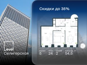 В жилом квартале, расположенном в южной части района Западное Дегунино, продаётся 2-комнатная квартира площадью 54.50 кв.м без отделки. Квартира расположена на 24 этаже 40-этажного корпуса 5 в жилом комплексе комфорт-класса Level Селигерская (компания Level Group/Левел групп).