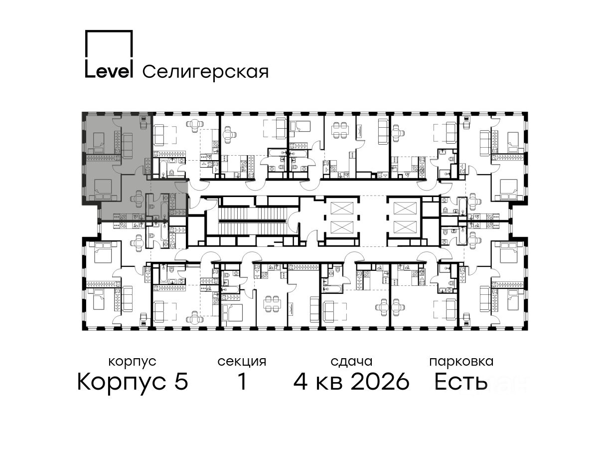 - 20+ планировочных решений: от студий до семейных квартир;