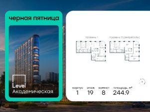В Академическом районе продаётся многокомнатная квартира площадью 244.90 кв.м без отделки. Квартира расположена на 19-м этаже 19-этажного жилого комплекса бизнес-класса Level Академическая (компания Level Group).