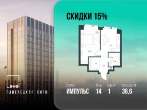В Даниловском районе столицы (ЮАО) продаётся 1-комнатная квартира площадью 36.60 кв.м без отделки. Квартира расположена на 14 этаже 45-этажного корпуса 'Горизонт' в жилом комплексе бизнес-класса Павелецкая Сити. Высота потолков 3.00м.