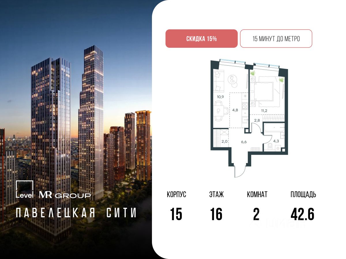 - 15 мин. пешком до метро "Павелецкая";