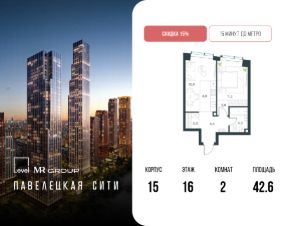 В Даниловском районе столицы (ЮАО) продаётся 2-комнатная квартира площадью 42.60 кв.м без отделки. Квартира расположена на 16 этаже 45-этажного корпуса 'Горизонт' в жилом комплексе бизнес-класса Павелецкая Сити. Высота потолков 3.00м.