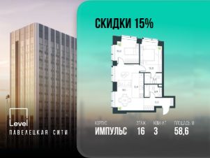 В Даниловском районе столицы (ЮАО) продаётся 3-комнатная квартира площадью 58.60 кв.м без отделки. Квартира расположена на 16 этаже 45-этажного корпуса 'Горизонт' в жилом комплексе бизнес-класса Павелецкая Сити. Высота потолков 3.00м.