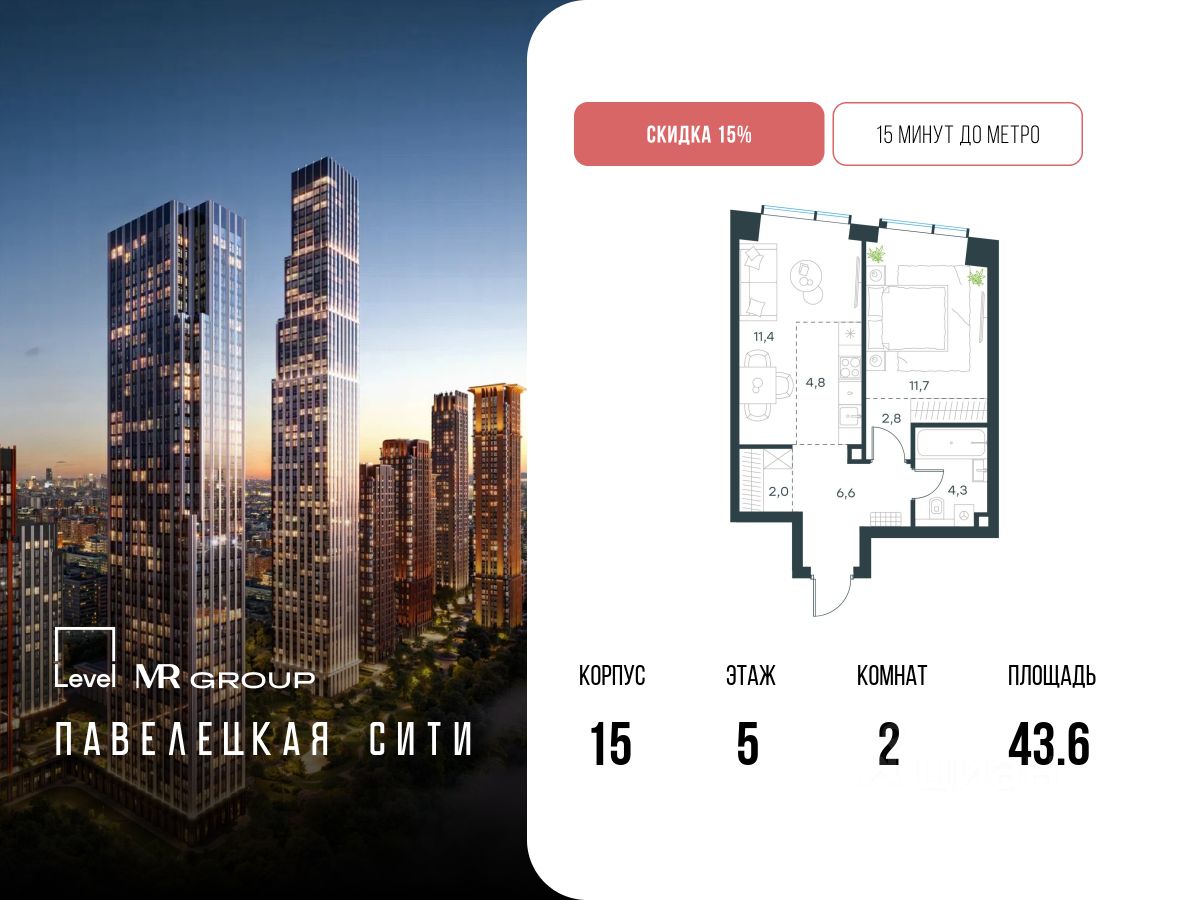 В Даниловском районе столицы (ЮАО) продаётся 2-комнатная квартира площадью 43.60 кв.м без отделки. Квартира расположена на 5 этаже 45-этажного корпуса 'Горизонт' в жилом комплексе бизнес-класса Павелецкая Сити. Высота потолков 3.00м.