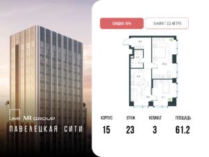 В Даниловском районе столицы (ЮАО) продаётся 3-комнатная квартира площадью 61.20 кв.м без отделки. Квартира расположена на 23 этаже 45-этажного корпуса 'Горизонт' в жилом комплексе бизнес-класса Павелецкая Сити. Высота потолков 3.00м.