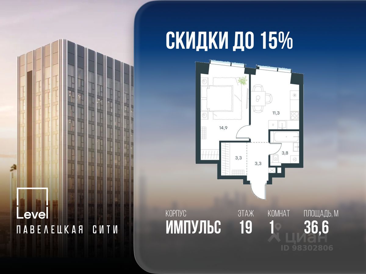 В Даниловском районе столицы (ЮАО) продаётся 1-комнатная квартира площадью 36.60 кв.м без отделки. Квартира расположена на 19 этаже 45-этажного корпуса 'Горизонт' в жилом комплексе бизнес-класса Павелецкая Сити. Высота потолков 3.00м.