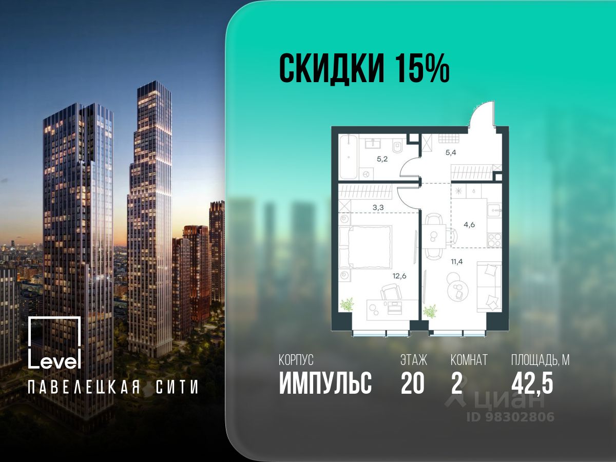 В Даниловском районе столицы (ЮАО) продаётся 2-комнатная квартира площадью 42.50 кв.м без отделки. Квартира расположена на 20 этаже 45-этажного корпуса 'Горизонт' в жилом комплексе бизнес-класса Павелецкая Сити. Высота потолков 3.00м.
