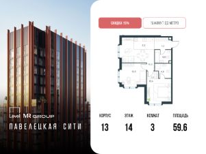 В Даниловском районе столицы (ЮАО) продаётся 3-комнатная квартира площадью 59.60 кв.м без отделки. Квартира расположена на 14 этаже 20-этажного корпуса 'Горизонт' в жилом комплексе бизнес-класса Павелецкая Сити. Высота потолков 3.00м.