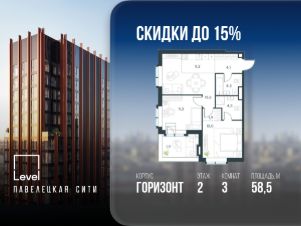 В Даниловском районе столицы (ЮАО) продаётся 3-комнатная квартира площадью 58.50 кв.м без отделки. Квартира расположена на 2 этаже 20-этажного корпуса 'Горизонт' в жилом комплексе бизнес-класса Павелецкая Сити. Высота потолков 3.00м.