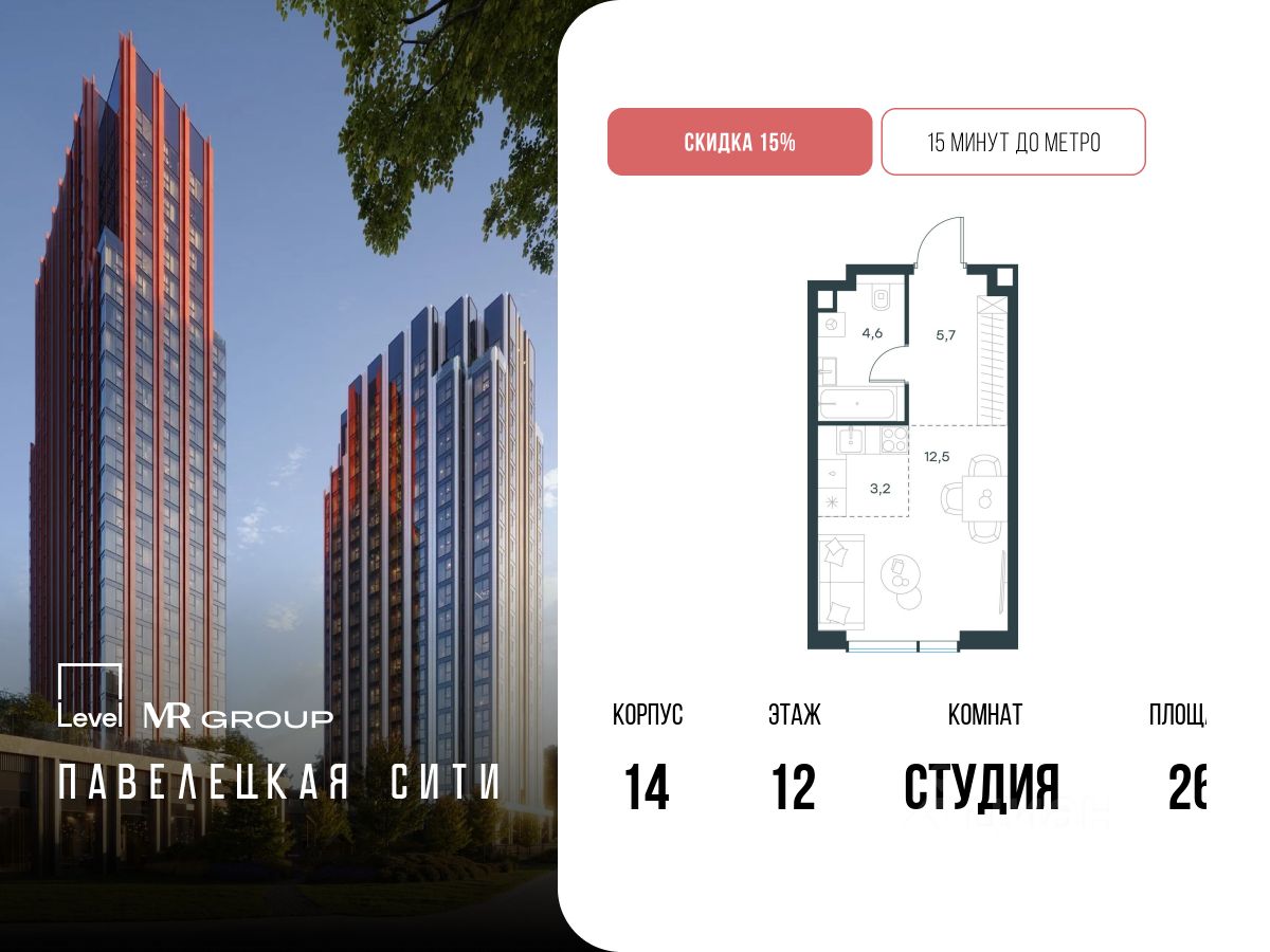 В Даниловском районе столицы (ЮАО) продаётся студия площадью 26.00 кв.м без отделки. Квартира расположена на 12 этаже 27-этажного корпуса 'Горизонт' в жилом комплексе бизнес-класса Павелецкая Сити. Высота потолков 3.00м.