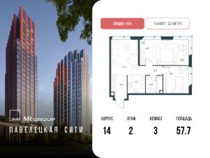 В Даниловском районе столицы (ЮАО) продаётся 3-комнатная квартира площадью 57.70 кв.м без отделки. Квартира расположена на 2 этаже 27-этажного корпуса 'Горизонт' в жилом комплексе бизнес-класса Павелецкая Сити. Высота потолков 3.00м.