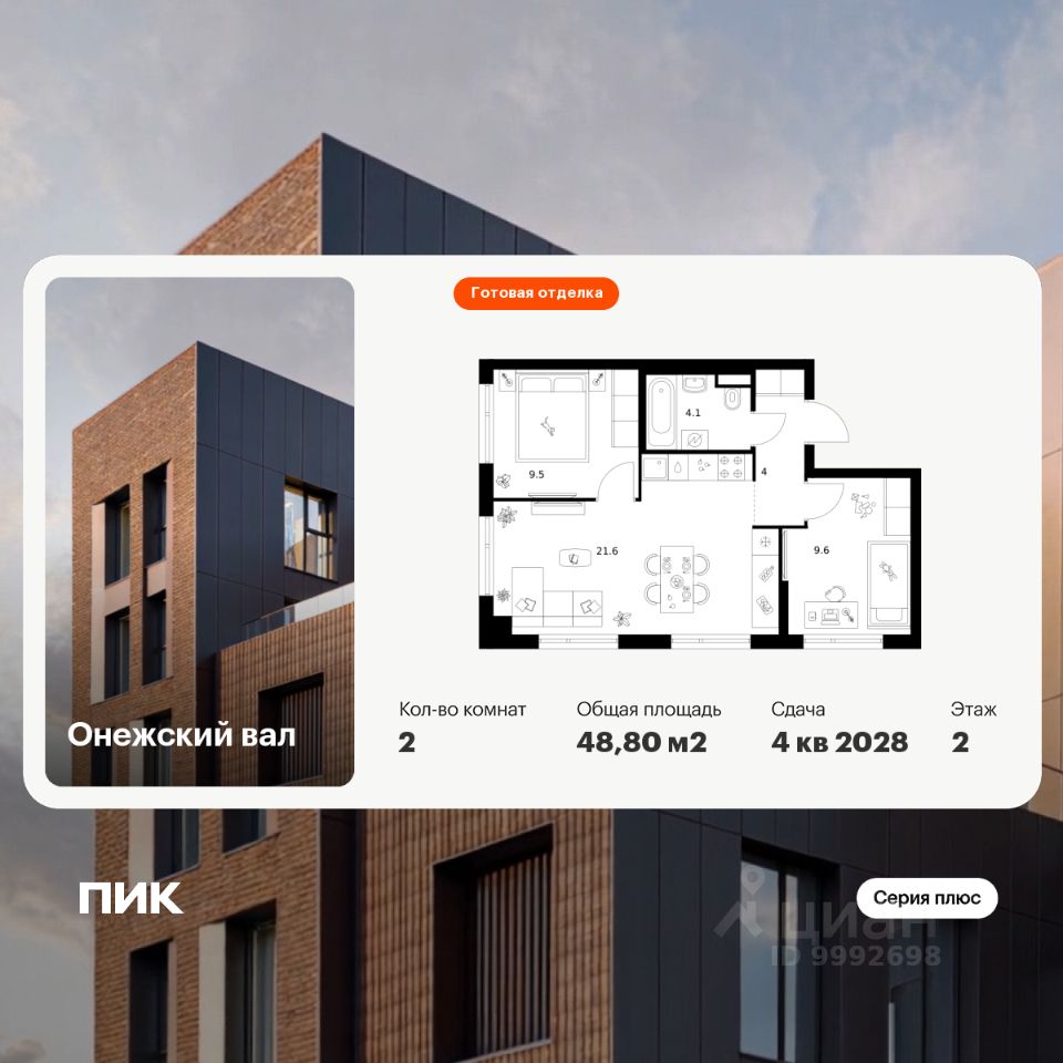 Новостройка! Продается 2-комн. кв-ра площадью 48,8 кв.м, (Корпус 1.1.2, Секция 2) 2 этаж 8-этажного дома в Онежский вал от ПИК. Квартал "Серии плюс" строится на севере Москвы, в 10 минутах пешком от станции метро "Селигерская" и МЦД "Моссельмаш". Проект понравится всем, кто привык к комфортной жизни и ценит возможность оставаться в ритме большого города и быстро добираться до центра столицы.