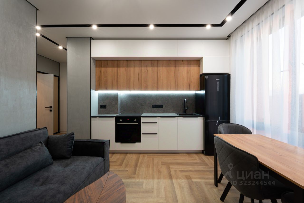 Продуманная планировка, прихожая, просторная зона кухни и гостиной, отдельная спальня, много мест для хранения.