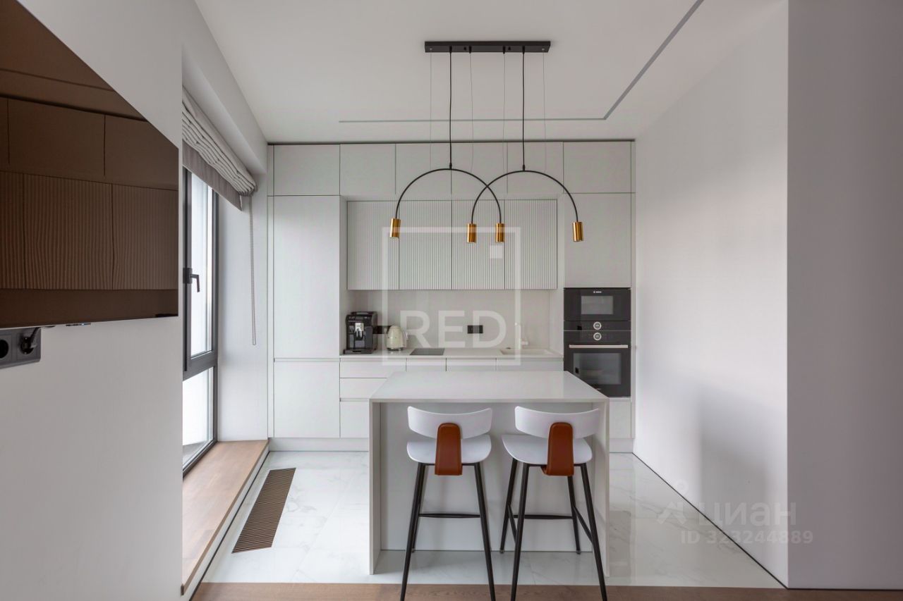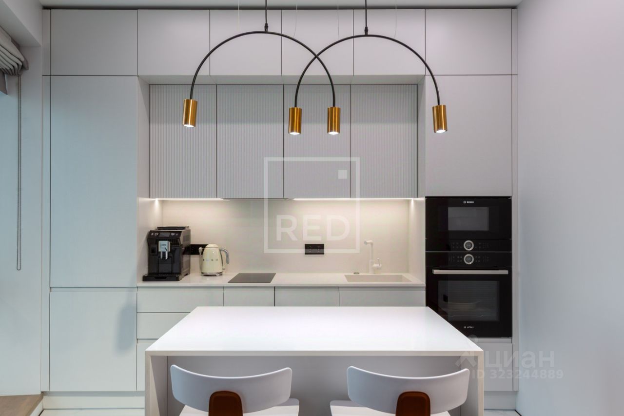 • Кухня в цвет стен, эмалевое покрытие, фартук, столешница и островок кварц. На кухне встроены духовой шкаф и микроволновка Bosch, посудомойка Delonghi, вытяжка Korting, холодильник Vestfrost,смеситель и измельчитель Omoikiri;