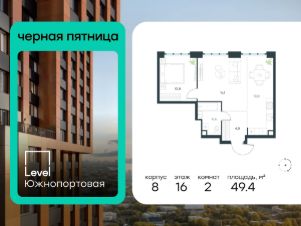 В северной части района Печатники продается 2-комнатная квартира площадью 49.40 кв.м без отделки. Квартира расположена на 16 этаже 49-этажного корпуса 8 в жилом комплексе комфорт-класса Level Южнопортовая (компания Level Group/Левел групп).