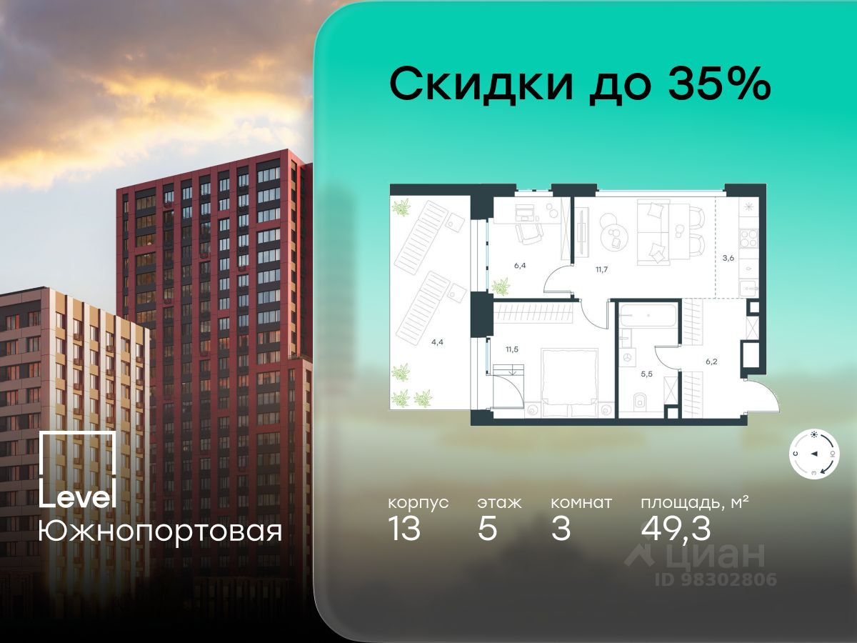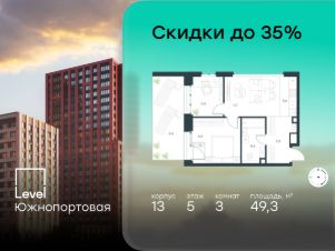 В северной части района Печатники продается 3-комнатный апартамент площадью 49.30 кв.м без отделки. Апартаменты расположены на 5 этаже 23-этажного корпуса 13 в жилом комплексе комфорт-класса Level Южнопортовая (компания Level Group/Левел групп).