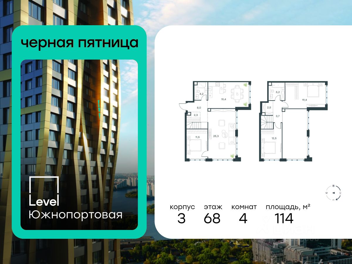 В северной части района Печатники продается 4-комнатная квартира площадью 114.00 кв.м без отделки. Квартира расположена на 68 этаже 68-этажного корпуса 3 в жилом комплексе комфорт-класса Level Южнопортовая (компания Level Group/Левел групп).