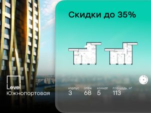 В северной части района Печатники продается многокомнатная квартира площадью 113.00 кв.м без отделки. Квартира расположена на 68 этаже 68-этажного корпуса 3 в жилом комплексе комфорт-класса Level Южнопортовая (компания Level Group/Левел групп).