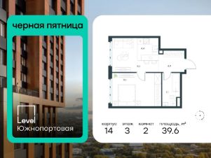 В северной части района Печатники продается 2-комнатный апартамент площадью 39.60 кв.м без отделки. Апартаменты расположены на 3 этаже 13-этажного корпуса 14 в жилом комплексе комфорт-класса Level Южнопортовая (компания Level Group/Левел групп).