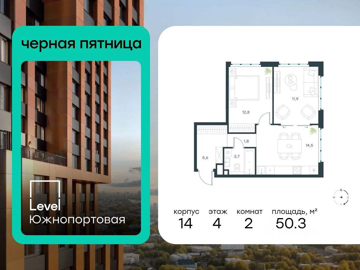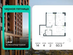 В северной части района Печатники продается 2-комнатный апартамент площадью 50.30 кв.м без отделки. Апартаменты расположены на 4 этаже 13-этажного корпуса 14 в жилом комплексе комфорт-класса Level Южнопортовая (компания Level Group/Левел групп).