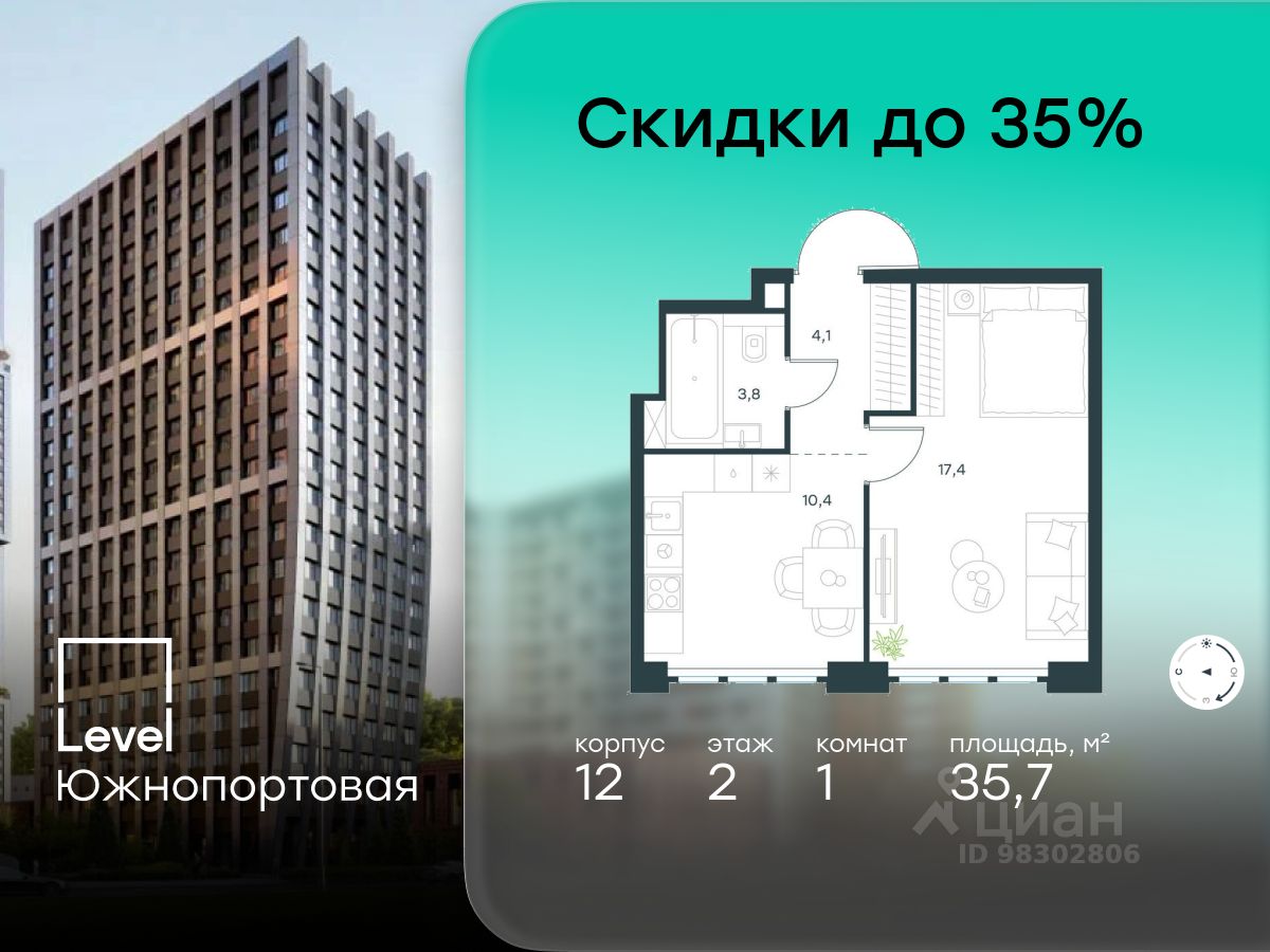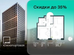 В северной части района Печатники продается 1-комнатная квартира площадью 35.70 кв.м без отделки. Квартира расположена на 2 этаже 20-этажного корпуса 12 в жилом комплексе комфорт-класса Level Южнопортовая (компания Level Group/Левел групп).