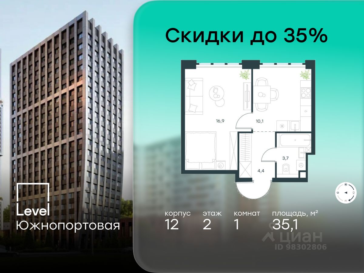 В северной части района Печатники продается 1-комнатная квартира площадью 35.10 кв.м без отделки. Квартира расположена на 2 этаже 20-этажного корпуса 12 в жилом комплексе комфорт-класса Level Южнопортовая (компания Level Group/Левел групп).