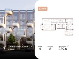 В историческом районе Хамовники продаются 5-к апартаменты площадью 239.60 кв.м, расположенные на 4 этаже делюкс-резиденции Саввинская 27 от Level.
