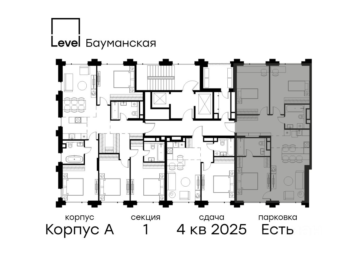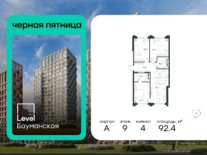 В Басманном районе (ЦАО) продается 4-комнатная квартира площадью 92.40 кв.м без отделки. Квартира расположена на 9 этаже 9-этажного корпуса " A" в жилом комплексе бизнес-класса Level Бауманская (компания Level Group).