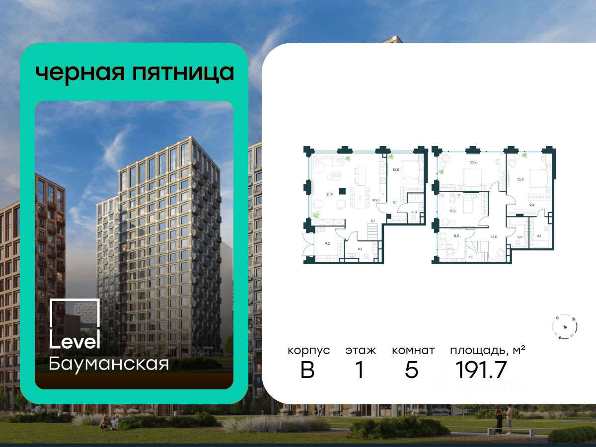 В Басманном районе (ЦАО) продается двухуровневый ситихаус площадью 191,7 кв.м без отделки. Апартаменты с отдельным входом расположены на 1 и 2 этаже 17-этажного корпуса "B" в жилом комплексе бизнес-класса Level Бауманская (компания Level Group).