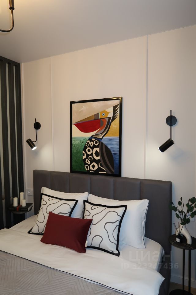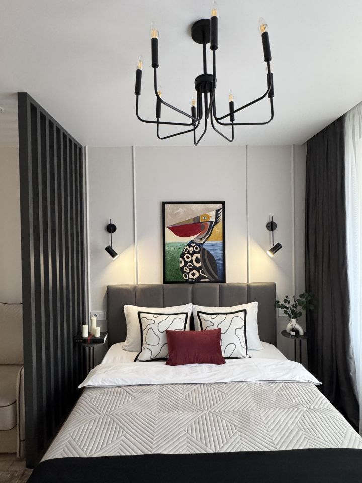 - Просторная уединенная зона для сна с двуспальной кроватью.