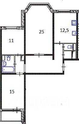 Зал с "эркером". Все окна во двор, направлены на восток и запад. Два санузла.