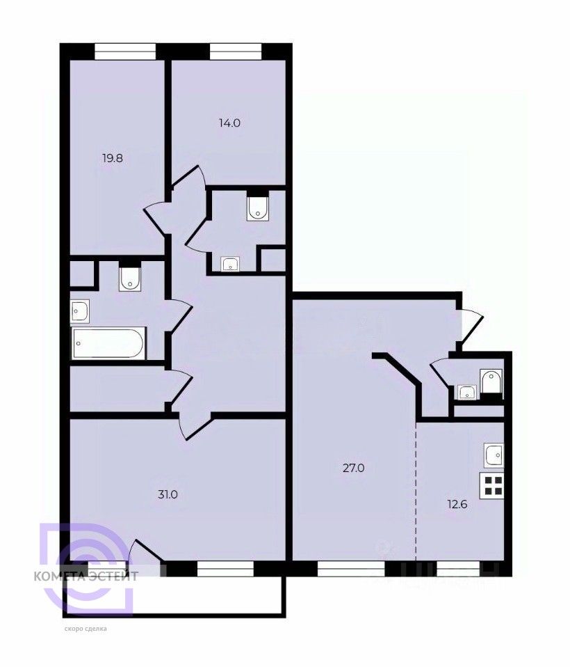 12,6 м²