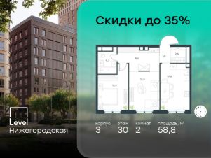 В активно развивающемся районе на юго-востоке столицы продается 2-комнатная квартира площадью 58,8 кв.м без отделки.. Квартира расположена на 30 этаже 37-этажного этажного корпуса 3 в жилом комплексе комфорт-класса Level Нижегородская (компания Level Group/Левел групп).