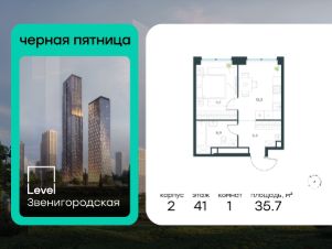 В жилом квартале продаётся 1-комнатная квартира площадью 35.70 кв.м без отделки. Квартира расположена на 41 этаже 64 этажного корпуса 2 в жилом комплексе комфорт класса Level Звенигородская (компания Level Group/Левел групп).