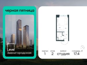 В жилом квартале продаётся студия площадью 17.40 кв.м white box. Квартира расположена на 2 этаже 48 этажного корпуса 1 в жилом комплексе комфорт класса Level Звенигородская (компания Level Group/Левел групп).
