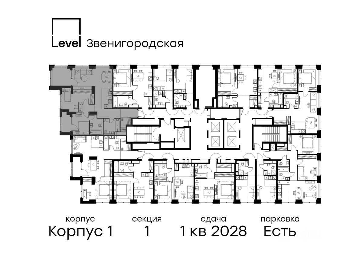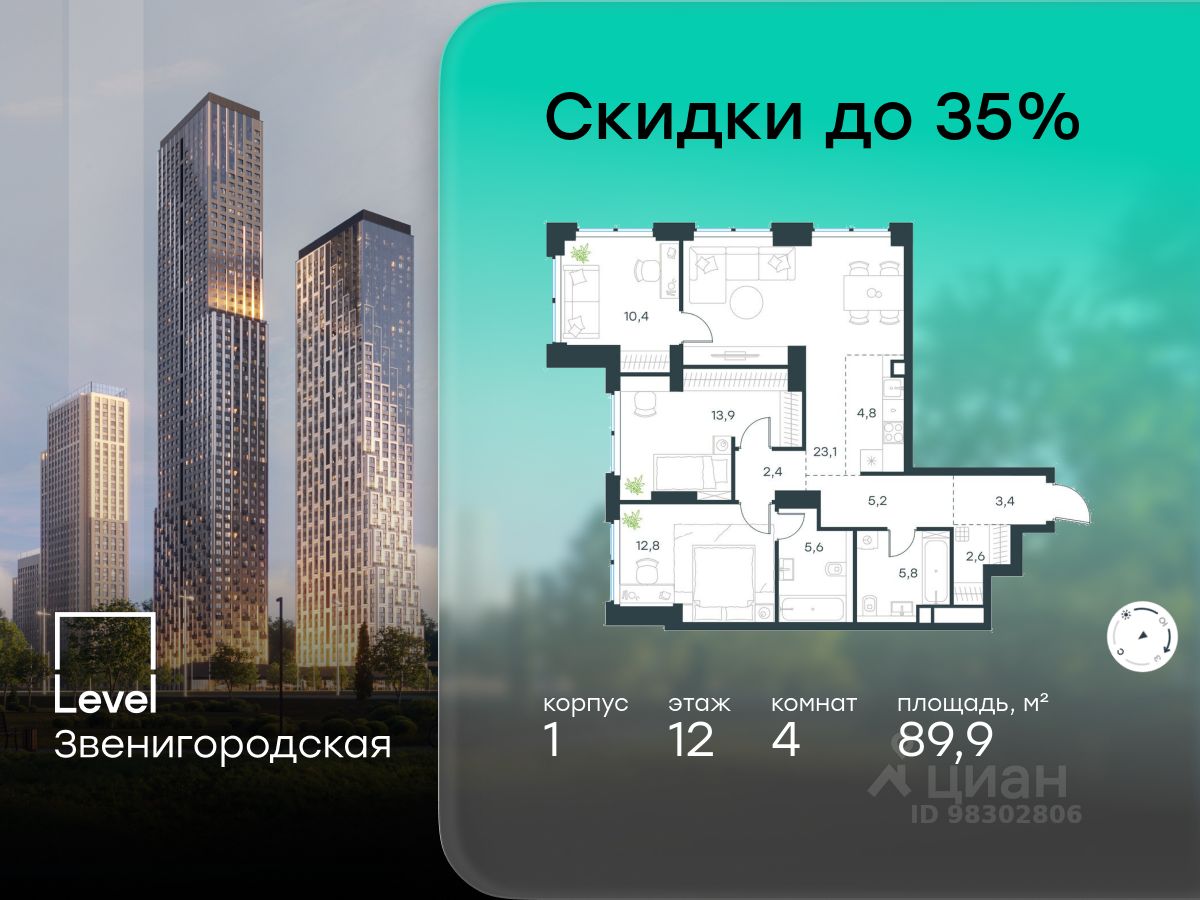 В жилом квартале продаётся 4-комнатная квартира  площадью 89.90 кв.м white box. Квартира расположена на 12 этаже 48 этажного корпуса  1 в жилом комплексе комфорт класса Level Звенигородская (компания Level Group/Левел групп).