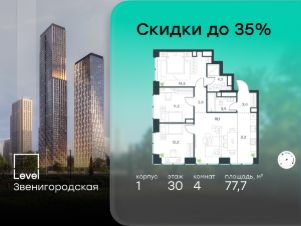 В жилом квартале продаётся 4-комнатная квартира  площадью 77.70 кв.м white box. Квартира расположена на 30 этаже 48 этажного корпуса  1 в жилом комплексе комфорт класса Level Звенигородская (компания Level Group/Левел групп).