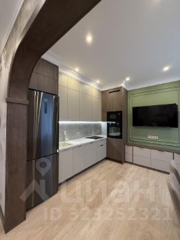 Продуманная кухня полностью укомплектована встроенной техникой — установлены холодильник, свч, духовой шкаф, посудомоечная машина, индукционная варочная панель, вытяжка. Также установлен мощный кондиционер.