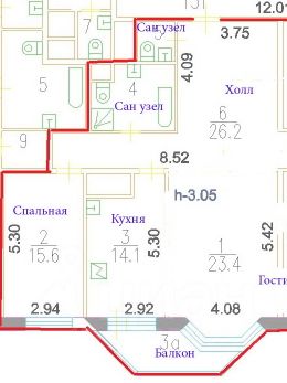 - 2 сан узла и большая кухонная зона, 1 спальня.