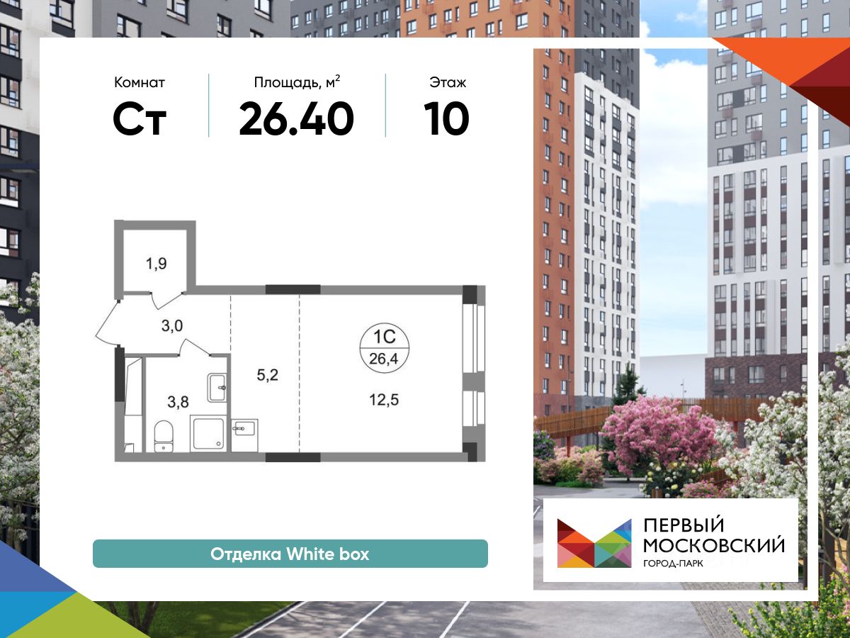 Продается квартира-студия без отделки в 9 фазе города-парка "Первый Московский".